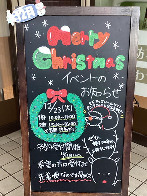 今月の看板はクリスマスイベントについてです!